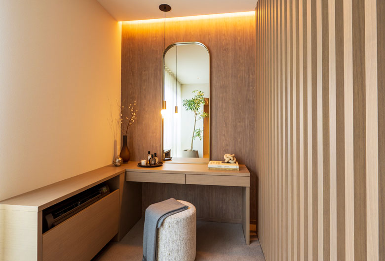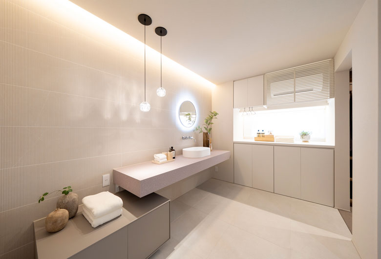 漆喰や草木染の挽板、大谷石などの自然素材を使用し、手触りや足触りを楽しめます。これらの素材は、居心地の良さと温かみを感じさせます。