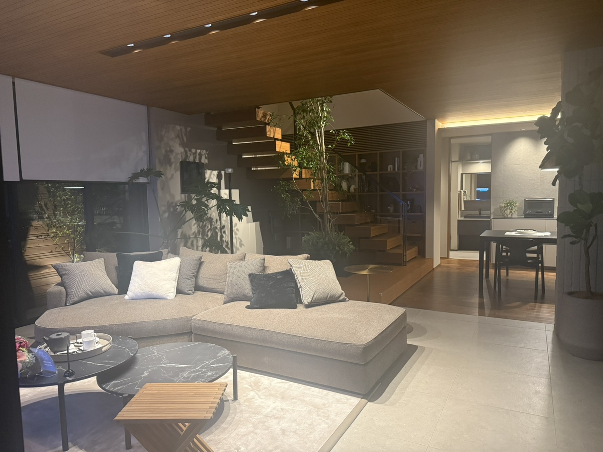 住友林業オリジナル『ビッグフレーム構法』による大開口、大空間が開放感と明るさを、ウォルナットの無垢床や木質天井を使用し木質感豊で且つ高級感のある上質な空間を実現。設計の自由度やオリジナルの収納部材等を活用し、家事効率に配慮した間取りとなっております。重量鉄骨に匹敵する圧倒的な耐震性、高耐久なご提案でメンテナンス費用も抑え、長期保証によりご家族が長く安心して快適にお住まいいただける家をご提供致します。そして、木のやすらぎとぬくもりにつつまれる心地よさで、ご家族が暮らす住まいを豊かに彩ります。