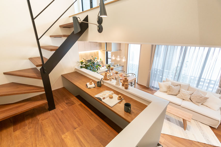 現実的なサイズでありながら、開放的なLDKや家事ラクな周遊動線に加え、ご要望の多いスキップフロアや家事コーナーなどを採用しています。また、セラミックトップのキッチンをはじめとする標準設備の充実ぶりも評判です!