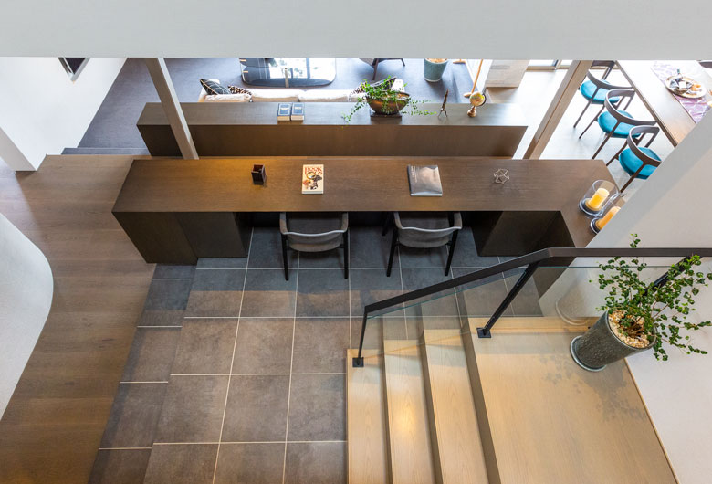 家族の極上時間を紡ぐ、積水ハウスの二世帯住宅です。高級感のある親世帯の1階は、天井高2,740mmを採用し、大切なご友人を招くことができる開放的で大空間のフロアです。2階の子世帯は、奥様に大好評の家事動線・インテリアを設えてあり、遊び心溢れるアクセントクロス・個性的な家具が見どころです。ピットリビング、ステージリビング、リビング階段の多層空間をご体感できます。ワンランク上の快適を生み出す積水ハウスの先進技術をぜひご覧くださいませ。