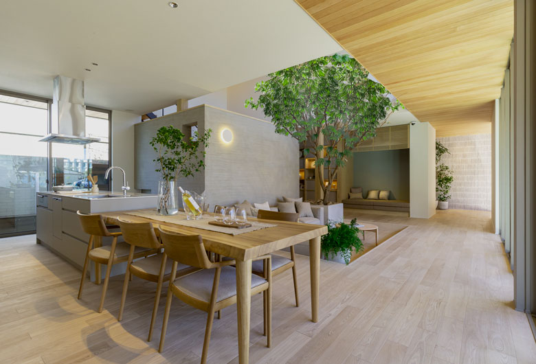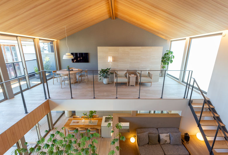 約46帖の勾配空間を実現した、大空間を立体的に体験できるモデルハウスです