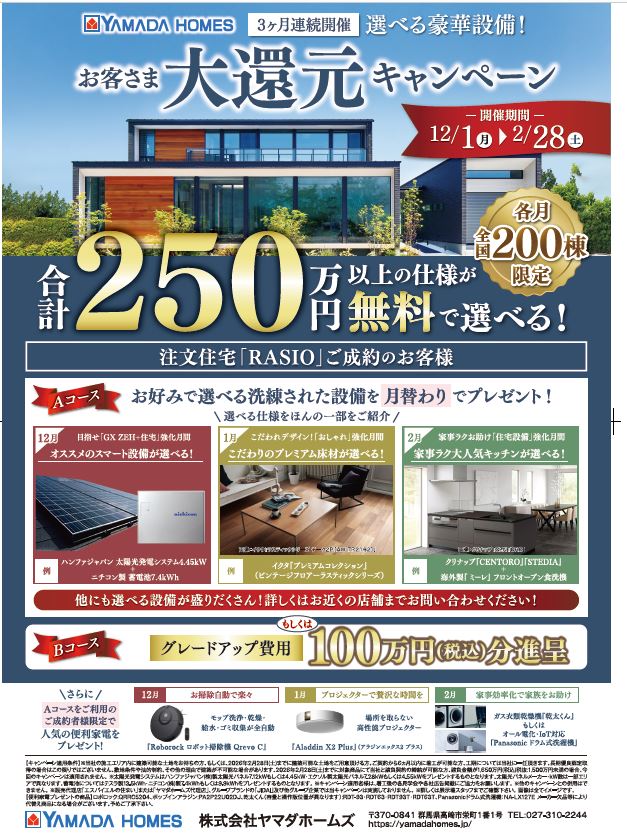 注文住宅を ご成約いただいたお客様 各月全国先着200棟限定で