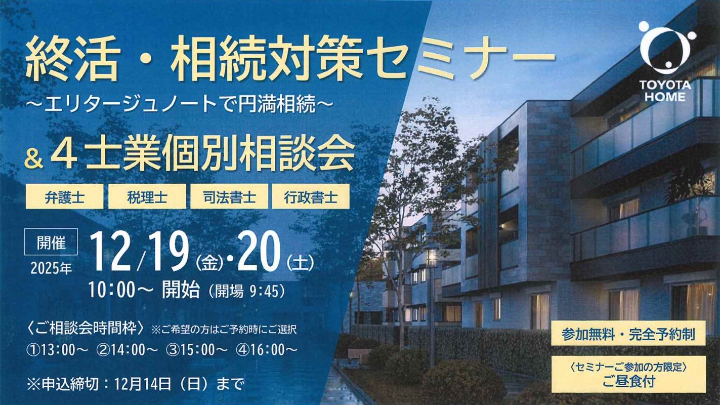 【終活・相続対策セミナー&4士業個別相談会】完全予約制