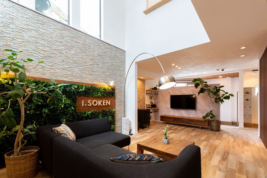 無添加住宅 横浜港北展示場は、きれいな空気と柔らかい雰囲気を醸し出す、天然素材のエイジングが楽しめる空間です。