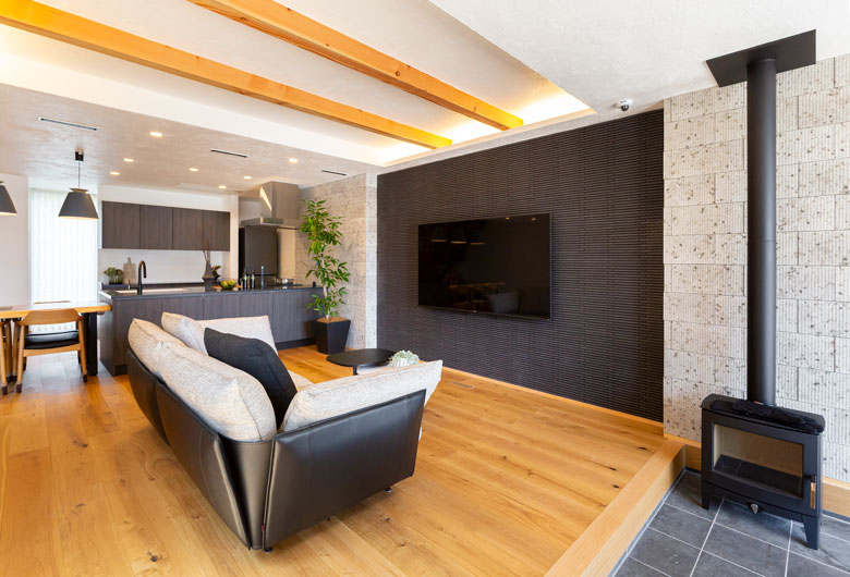 優しい肌触りと香りの天然無垢材、オリジナル漆喰塗り壁の自然素材で安心で心地よい住空間を体感頂けます。