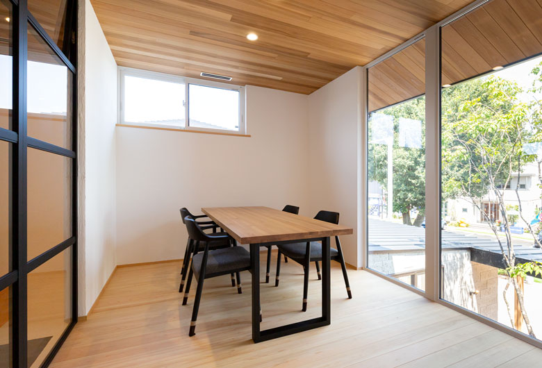 中庭より屋外との繋がりを体感頂ける展示場となっております。