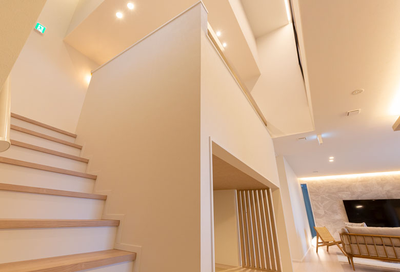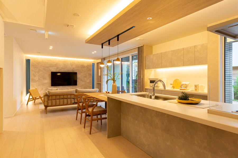 トリプルサッシ・内外W断熱「UA値0.28以下」・「実測平均C値0.32」の高気密・高断熱住宅【Nees】仕様のモデルハウスです。トップクラスの高断熱・高気密性能がもたらす快適さと完全自由設計のアイ工務店だから実現可能な多層構造を実際にご体感ください。