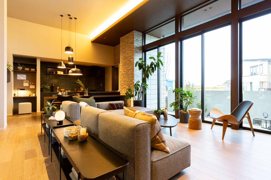 雪国上越での生活を見据えた資産価値の残る邸宅。高い断熱性能を維持しながら実現できる大開口+高天井の空間設計。性能とデザインを両立させた住まいをご体感ください。
