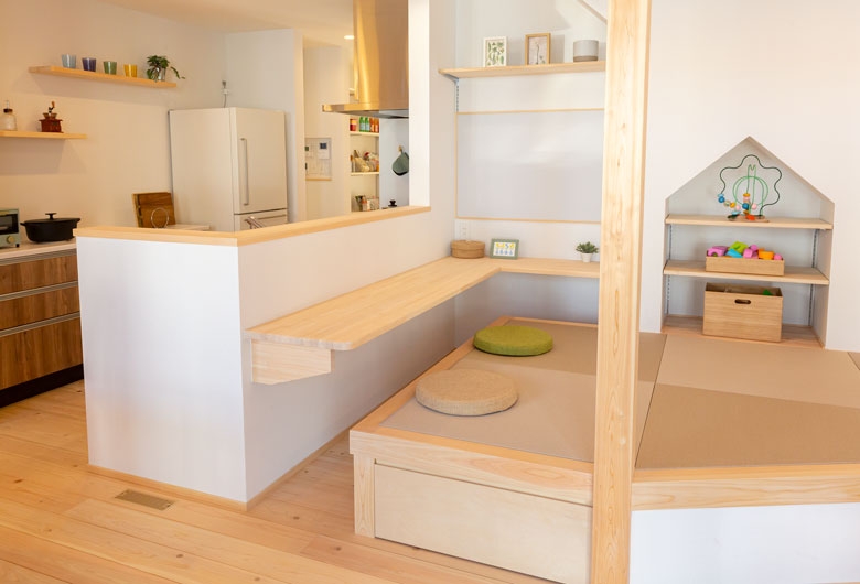 さらに、動線の良い間取りと適所に設けた収納により、家事もスムーズ。家事の時間を短縮し、家族と過ごす時間を増やせる、家族を育む住まいです。