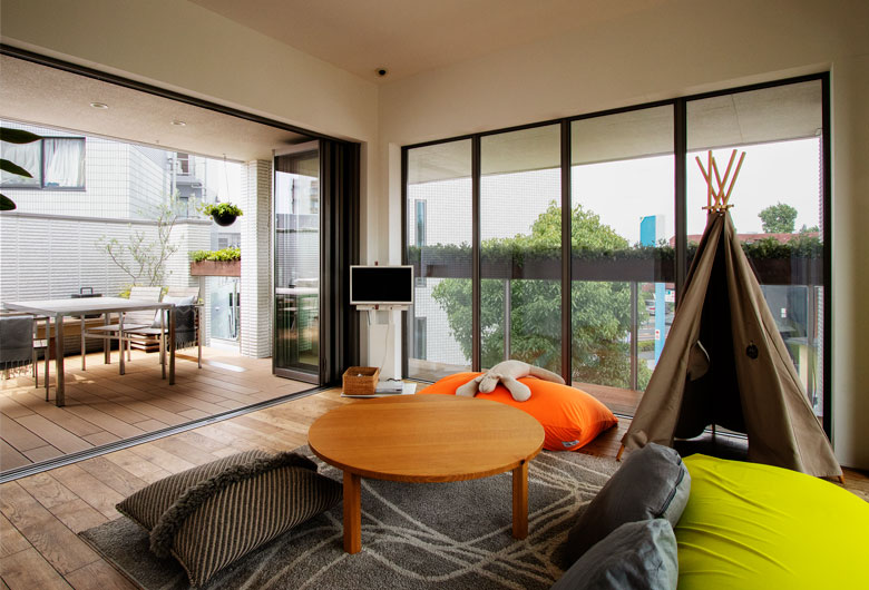 各フロア『アウトドアリビング』自然の風と光を感じる心地よい空間をご体験いただけます!