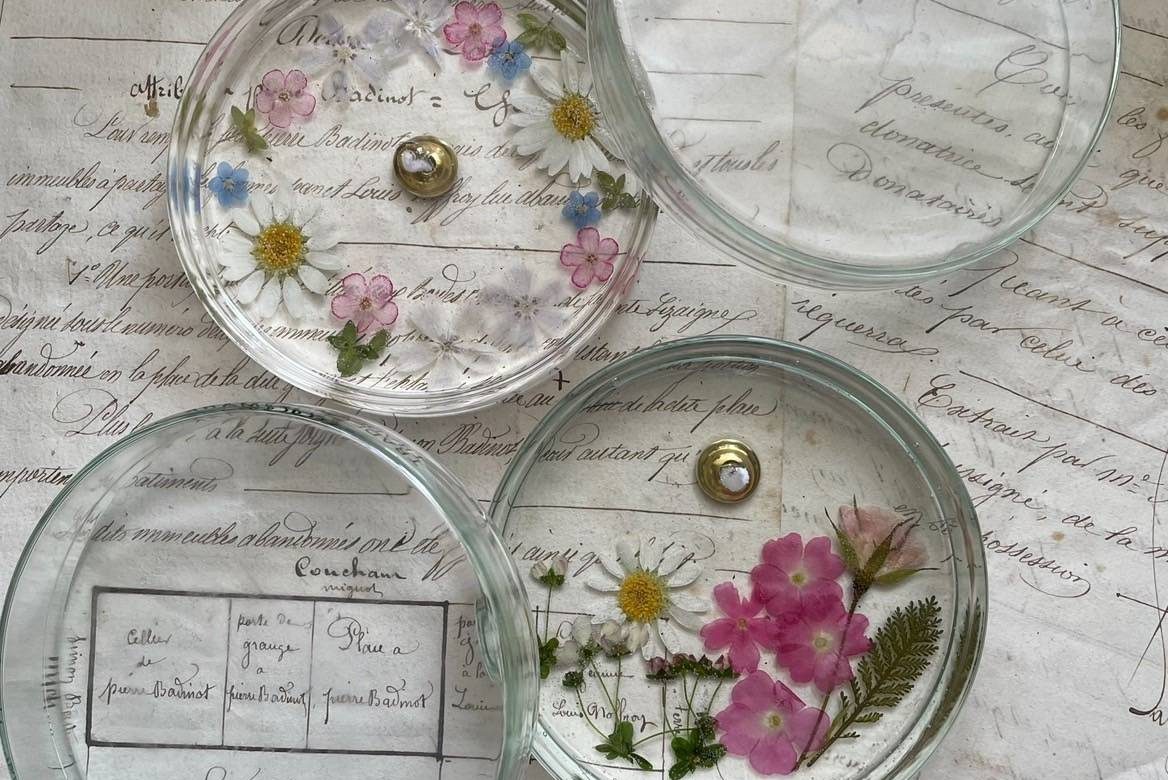 ガラスのシャーレにお好きなお花を閉じ込めて、世界に一つだけのキャンドルを作りましょう。