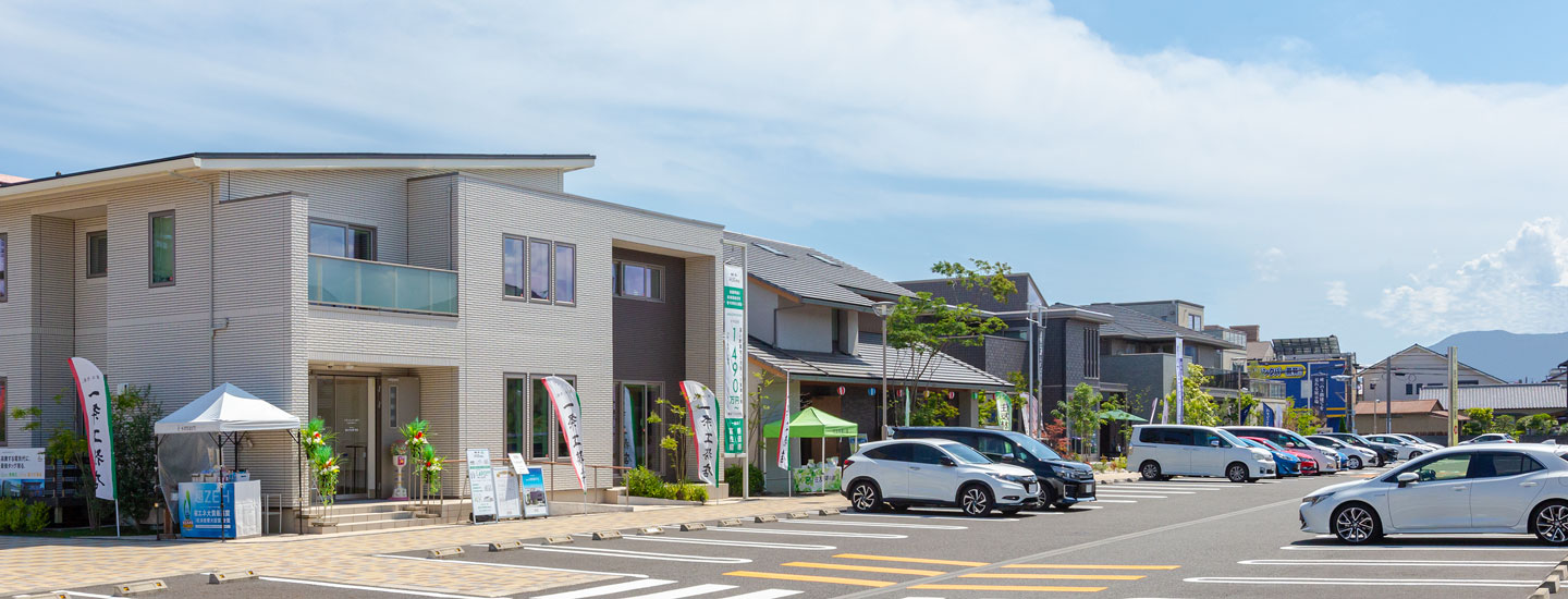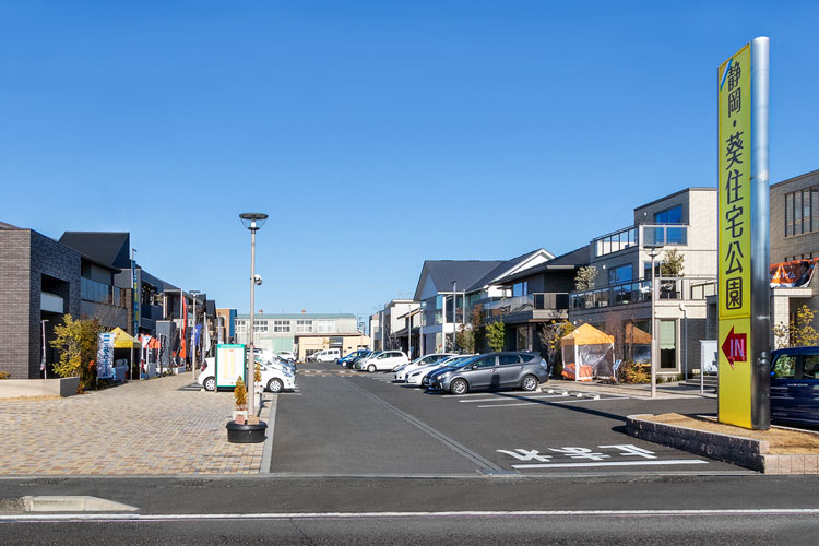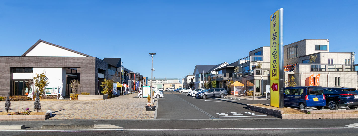 唐瀬街道沿い・静岡市立高校そばの会場です。豊かな彩りをあたえ、良質な暮らしを実現するためのワンランク上の住まいづくりをご提案致します。