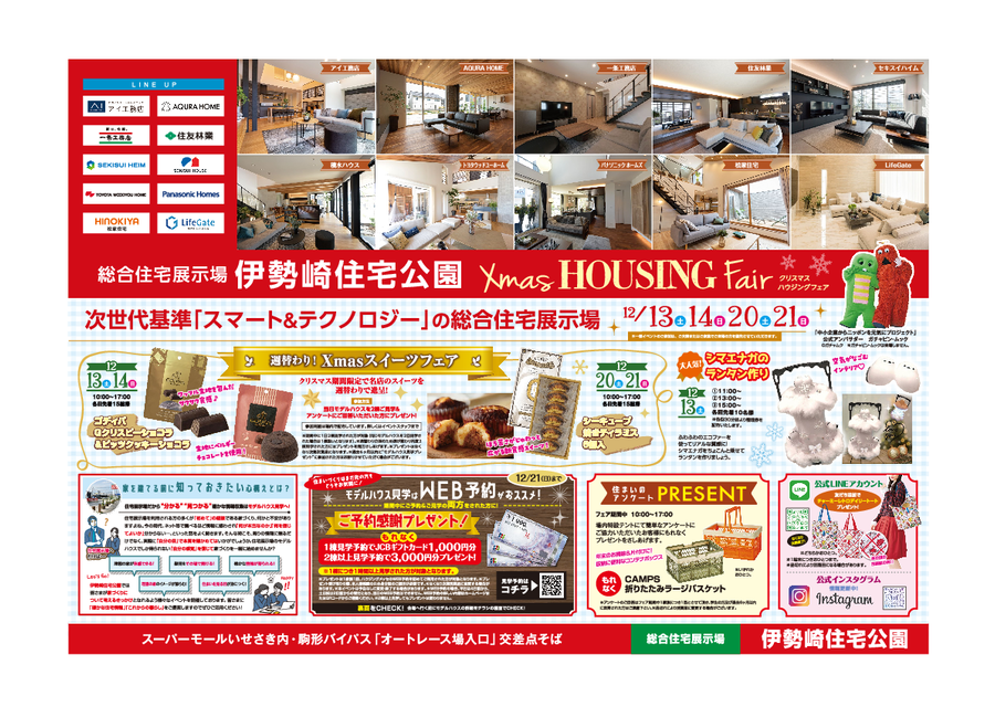 住まいの先進技術と快適さの融合をテーマにした“次世代型住宅”のモデルハウスをご用意しております。スーパーモールいせさき内にある住宅展示場です。
