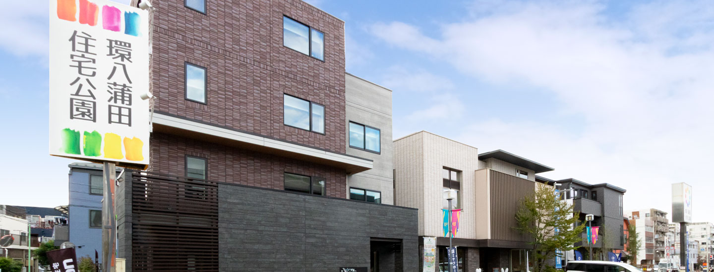 東京都大田区の環八沿いにある総合住宅展示場。JR・東急池上線・東急多摩川線「蒲田駅」から歩いてすぐです。大手ハウスメーカーの3・4階建てが立ち並んでいます。賃貸・店舗併用、二世帯住宅のご相談もお任せください。