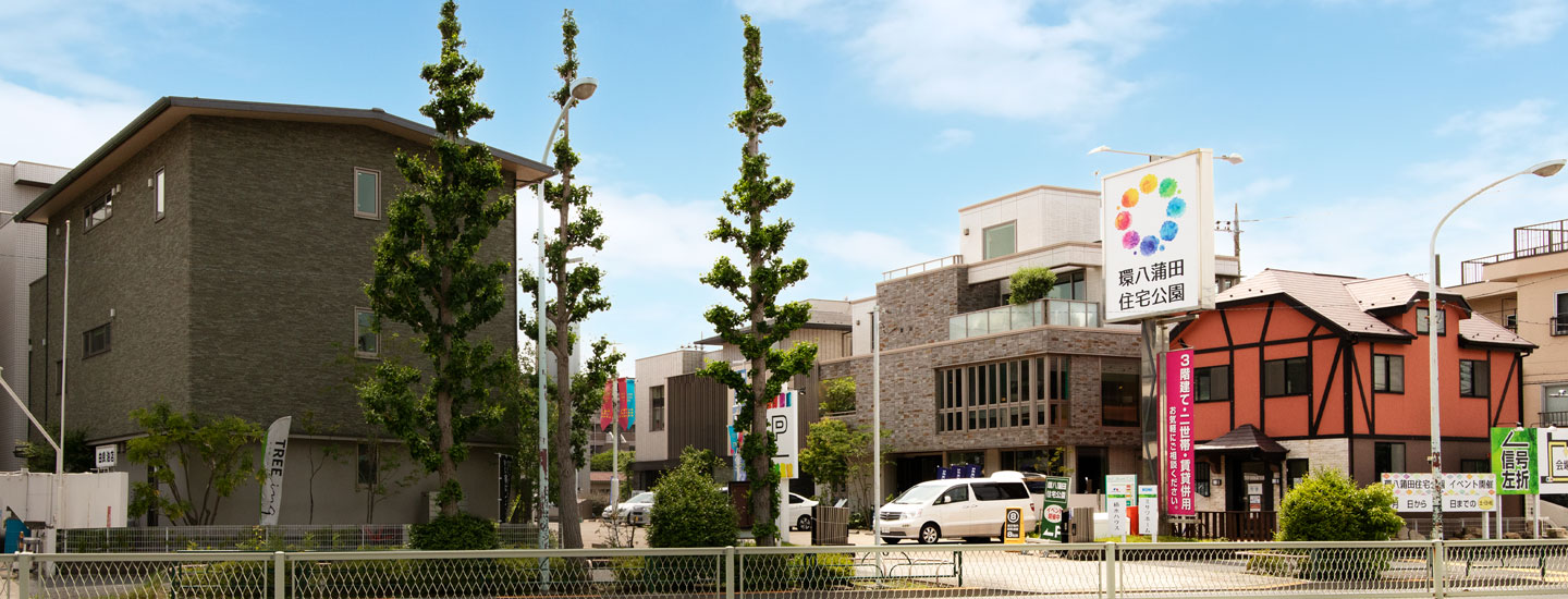 東京都大田区の環八沿いにある総合住宅展示場。JR・東急池上線・東急多摩川線「蒲田駅」から歩いてすぐです。大手ハウスメーカーの3・4階建てが立ち並んでいます。賃貸・店舗併用、二世帯住宅のご相談もお任せください。