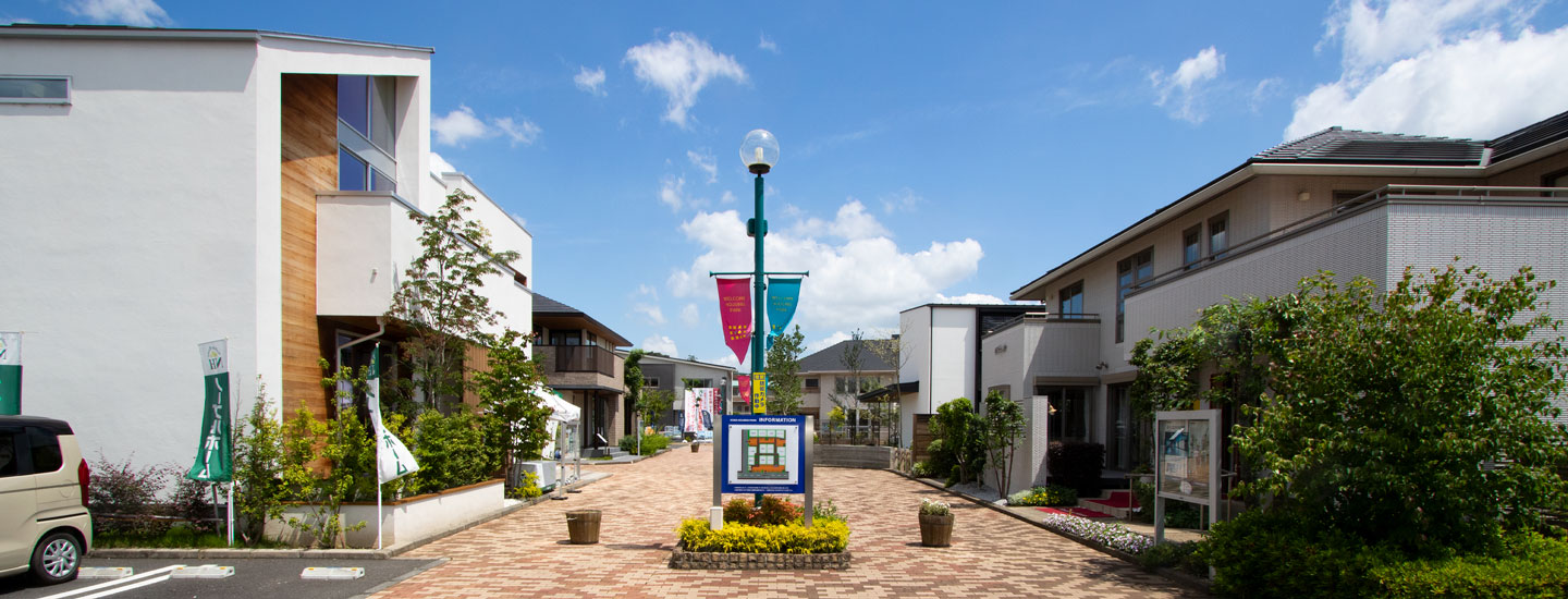 総合住宅展示場 古河住宅公園は、JR古河駅東口から徒歩13分。近くを国道4号が走る十間道路沿いの当展示場は、車でも電車でもアクセス良好です。1994年のオープンから長きに渡るバリエーション豊富な10棟のモデルハウスは、場内の緑やレンガ調に敷石と調和して落ち着いた街並みを連想させます。住まいの情報が一杯の住宅展示場、古河住宅公園のモデルハウスを是非ご覧下さい。