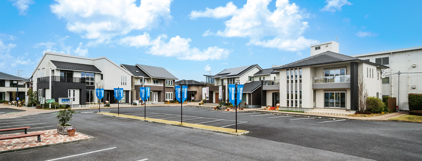 国道294号線沿い、イオンタウン守谷向かいの総合住宅展示場。先進技術を結集したモデルハウス全14棟をぜひ一度ご覧ください。