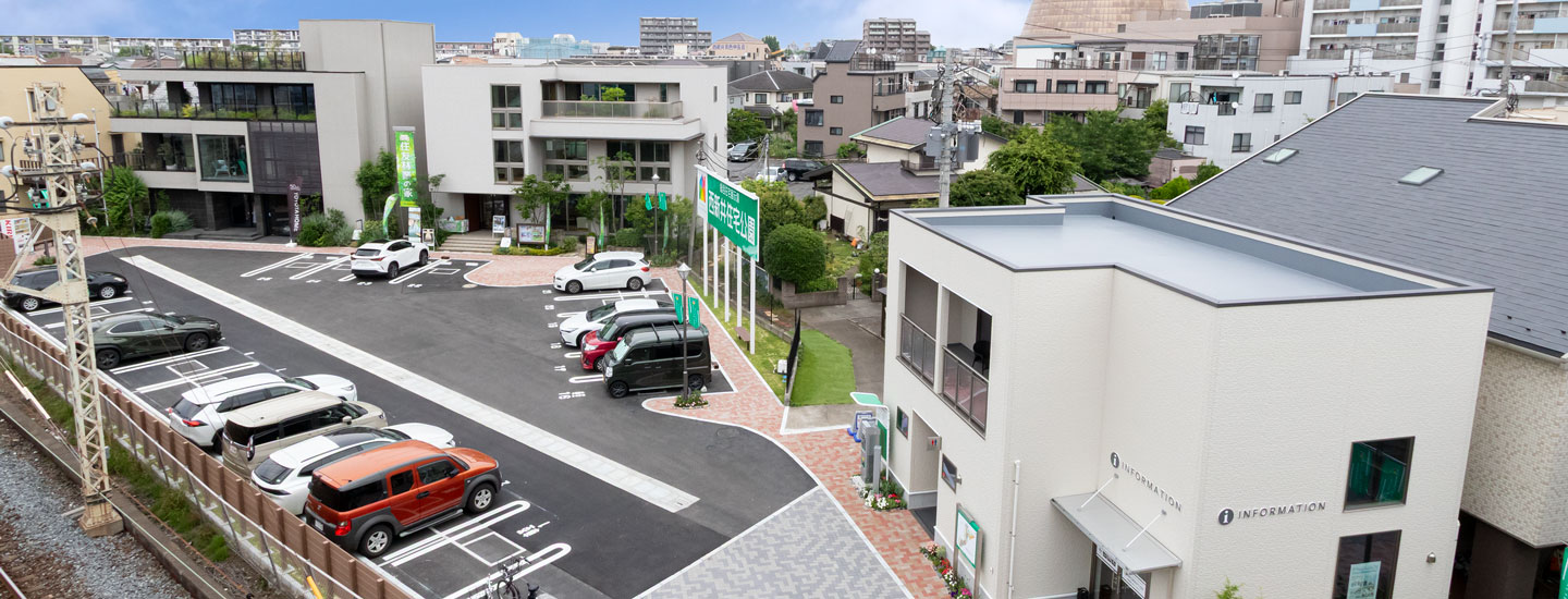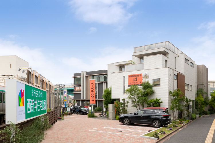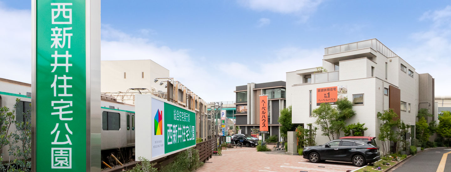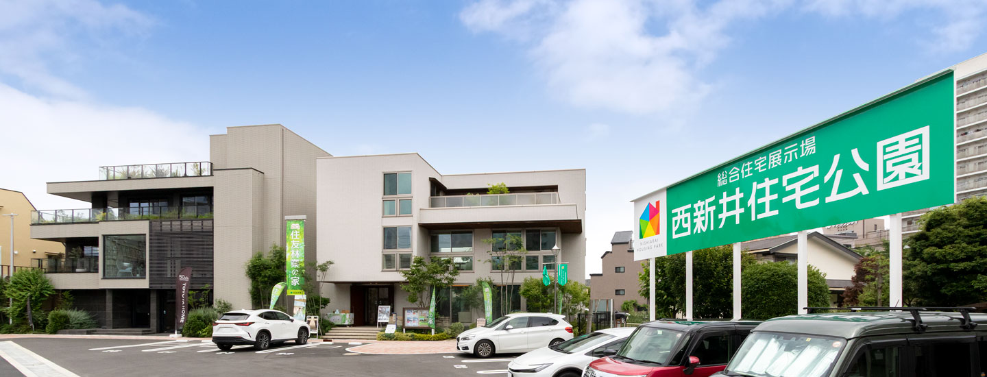東武線「西新井駅」東口から徒歩1分、環七通り、西新井陸橋わきにある住宅展示場です。昭和49年にオープンして以来、皆さまの夢を叶え続ける伝統の住宅展示場となっております。