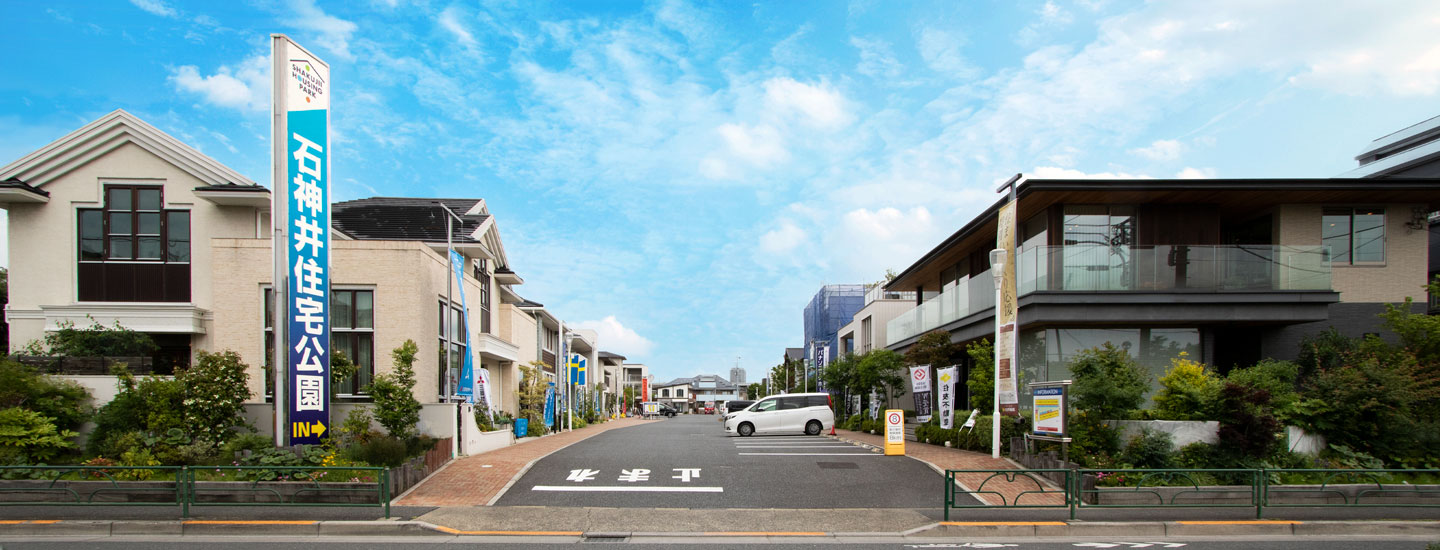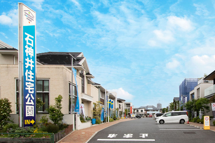 千川通りに面しており、非常にわかりやすい場所にある住宅展示場です。モデルハウスが対面式に並んで建っているので外観等も一見して比較しやすく、とても見やすいレイアウトの住宅展示場です。