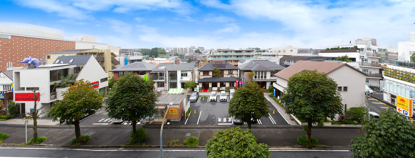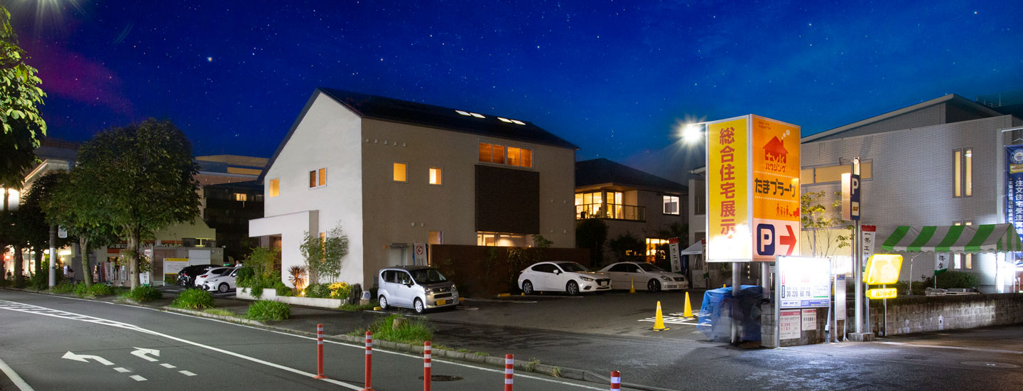 緑ゆたかな住宅街をつなぐ東急田園都市線・たまプラーザ駅南口より徒歩1分。 住宅展示場周辺には、ショッピングセンターなど商業施設が整っており、住んでみたい街として人気のひときわスタイリッシュな住宅エリア。木々の織り成す景観を楽しみながら、お散歩感覚で最新のモデルハウスをご見学いただける、「tvkハウジングたまプラーザ」へぜひご家族そろってお越しください。