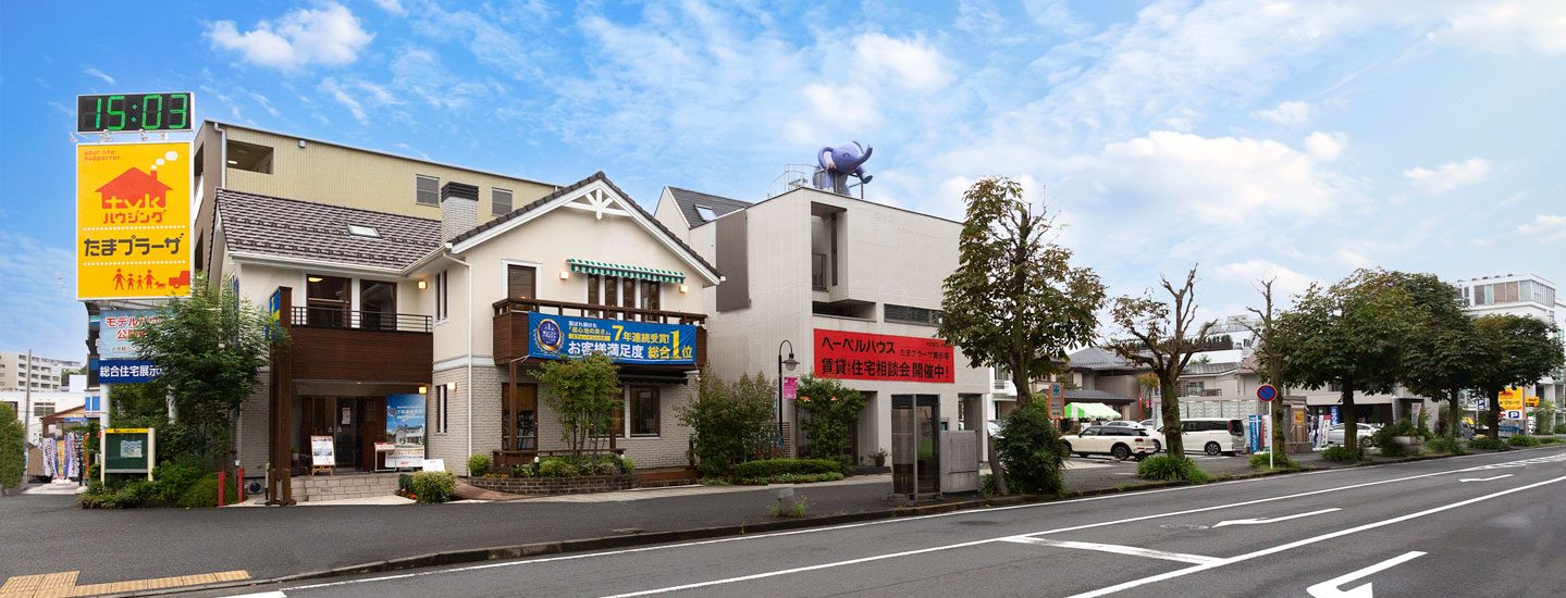 緑ゆたかな住宅街をつなぐ東急田園都市線・たまプラーザ駅南口より徒歩1分。 住宅展示場周辺には、ショッピングセンターなど商業施設が整っており、住んでみたい街として人気のひときわスタイリッシュな住宅エリア。木々の織り成す景観を楽しみながら、お散歩感覚で最新のモデルハウスをご見学いただける、「tvkハウジングたまプラーザ」へぜひご家族そろってお越しください。