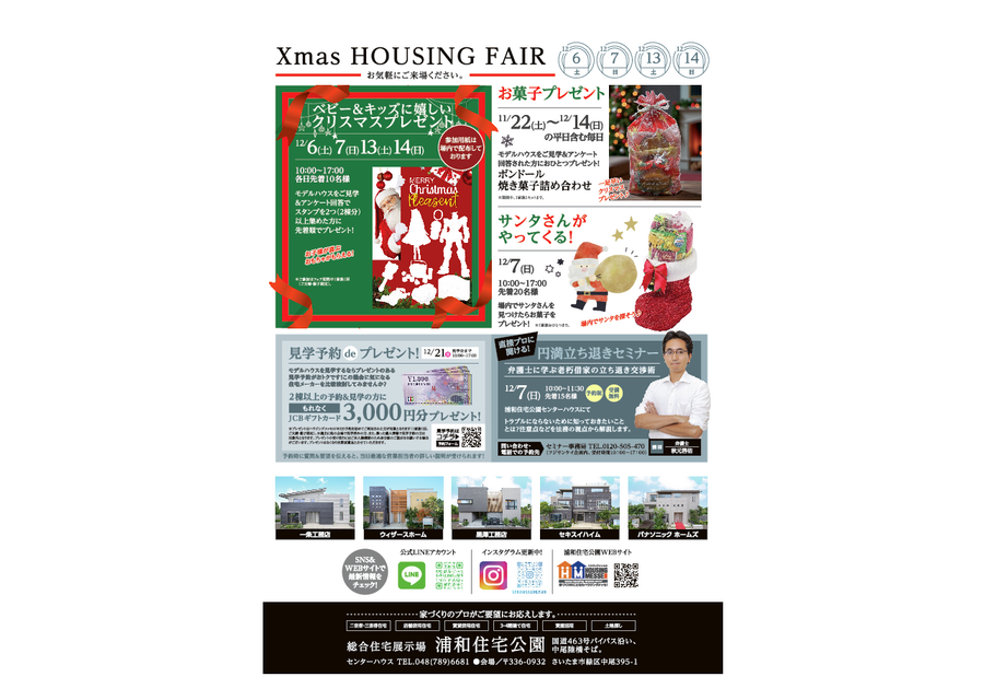 事前の見学予約や資料請求もWEBから簡単に可能。未来の暮らしをリアルに描くきっかけとして、ぜひ浦和住宅公園にお越しください。