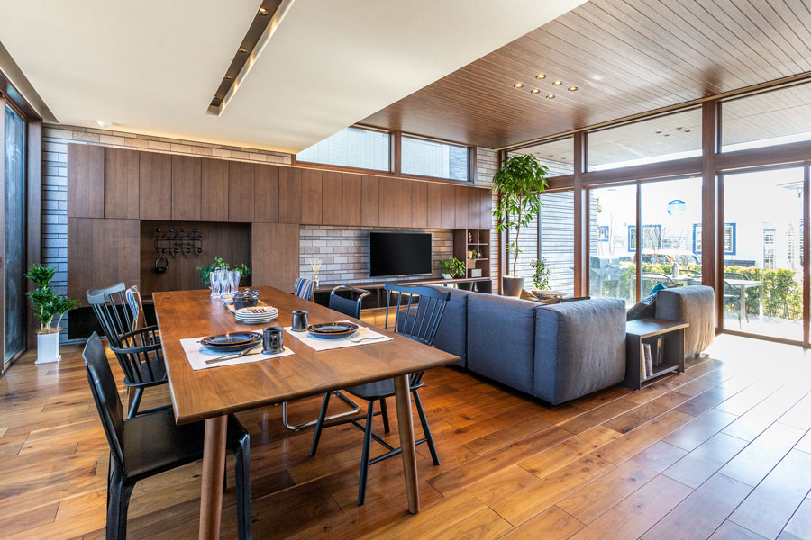 約3mの高天井、壁一面の大開口、LDKと一体で使えるアウトドアリビングが今までにない解放感を演出します。住まいの新基準、ZEH(ゼッチ)にも対応するハイクラスなテクノロジーの住まいです。高断熱なのに大開口、高耐震なのに大空間、100年先を見据えたミサワホームの新しい住まいをぜひご体感ください。