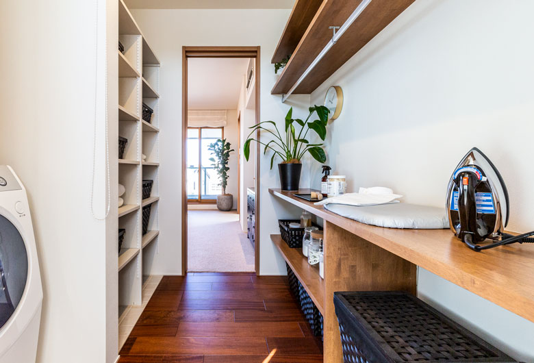 室内は、無垢材・無垢挽板のフローリングや木を貼った天井・石貼りの壁など、本物の素材を使用した上質感あふれるインテリアです。
