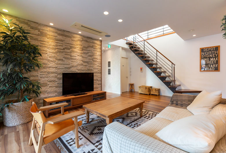 変化と開放感に満ちた大空間に家族が集う心地よい1階と、家族それぞれのスタイルに合わせた自由自在の2階。「心を充実させる我が家で新たな幸せに気づく生活」をコンセプトに、木のぬくもりを活かした家具で有名なACTUS(アクタス)とコラボレーションしました。