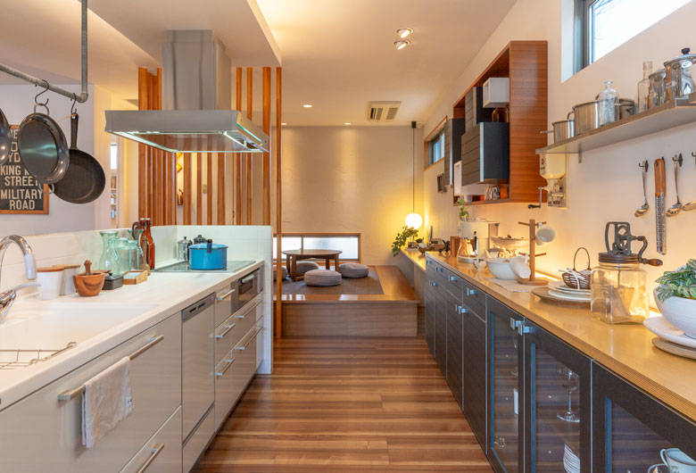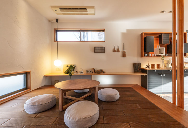 変化と開放感に満ちた大空間に家族が集う心地よい1階と、家族それぞれのスタイルに合わせた自由自在の2階。「心を充実させる我が家で新たな幸せに気づく生活」をコンセプトに、木のぬくもりを活かした家具で有名なACTUS(アクタス)とコラボレーションしました。