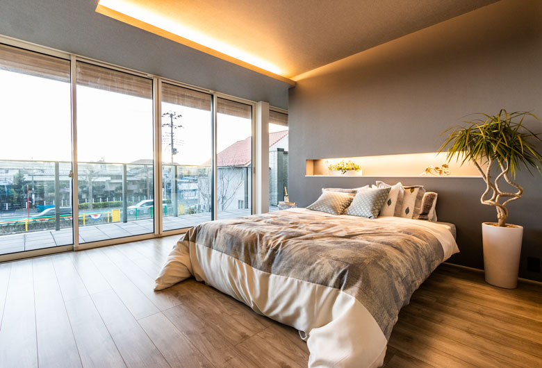 2.7mの高い天井と10mの大きな連続開口で、広々とした開放感のある住まい