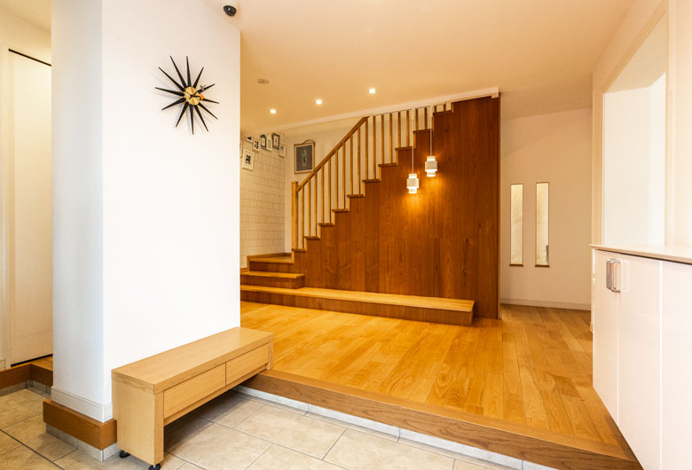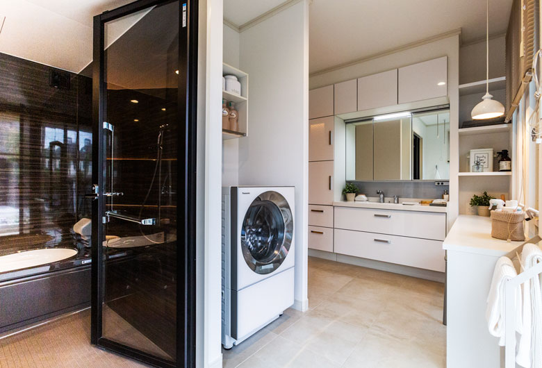 ナチュラルモダンとシンプルスタイリッシュをミックスさせた二世帯プランです。1階にはセキスイハイムならではの大開口・大空間により開放感を演出したLDK、来客を気持ちよく迎えることができる2WAYに流行の土間収納を備えた玄関、玄関から直行できるパントリーを備えた回遊性のあるキッチンに加え、掘りごたつのある本格和室がございます。2階にはライフスタイルよって使い分けのできる続き間の子供部屋、大容量のW.I.Cと書斎利用のできる小屋裏を備えた主寝室を設計し、日々の暮らしに寄り添った空間を演出しました。