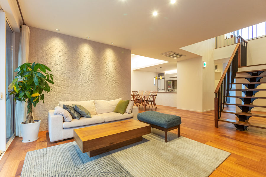 素材にこだわった上質な空間。高い住宅性能も備えた、豊かな暮らしを叶える住まい。