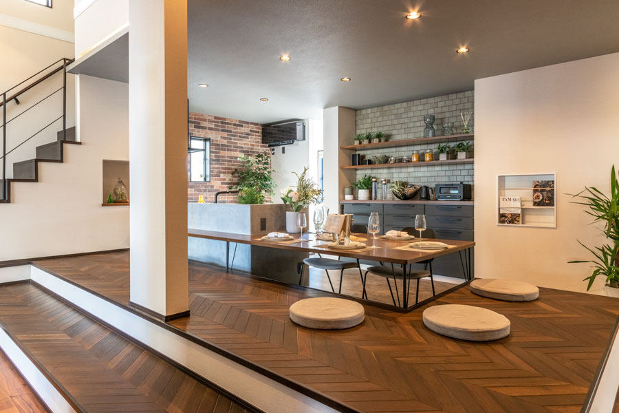 アーバン棟とシンプル棟の2つの建物を同時に体験できます。アーバン棟は家族の会話が弾む造作ベンチ付きのダイニングキッチン、リビングには1.5階の吹き抜けがありキャットウォークが続いています♪シンプル棟はリビングを一望できる読書や勉強にぴったりなスキップフロア、洗練された佇まいのオープンキッチンが魅力です!他にも玄関ホールの洗面コーナーや見比べられる4つのワークスペース、中2階のマルチスペースなど、新しい生活様式を想定したアイデアを各所に採用!ぜひ、お気軽にお越しください。