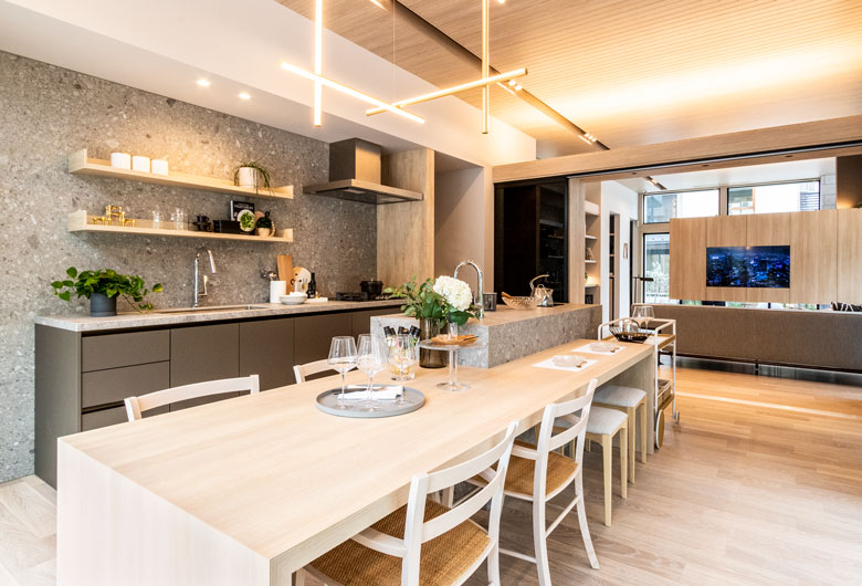 SDGs・カーボンニュートラル、ニューノーマルな暮らし方が定着しつつある昨今、新しい働き方や新しい住まい方が求められています。テーマは【新百合山手の邸宅】、外観はシンプルながら存在感際立つ大判タイルと深い軒の出が高級感を演出します。内部は圧巻の『高天井と大空間』、おうち時間を楽しむプライバシーに配慮した『囲む中庭・アウトラウンジ』、共働き夫婦に『快適な家事動線』、『ながら・創造・集中』3つのスタイルを考えた在宅ワークスペース、洗練された新しい新百合ヶ丘スタイルをデザインしました。