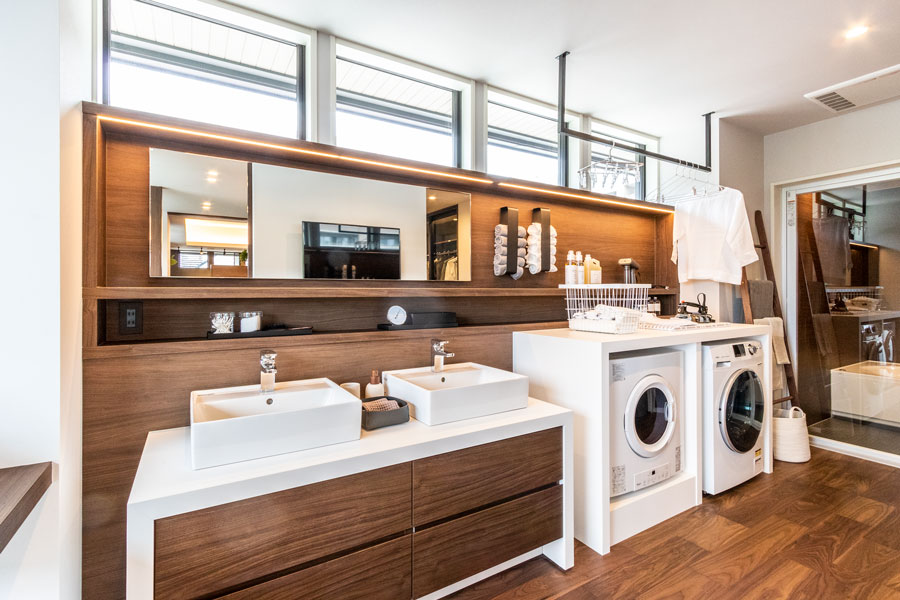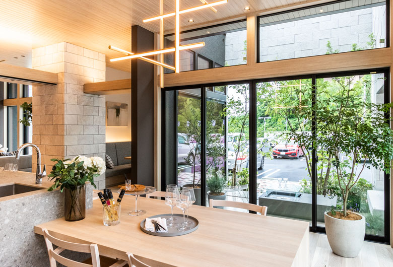 SDGs・カーボンニュートラル、ニューノーマルな暮らし方が定着しつつある昨今、新しい働き方や新しい住まい方が求められています。テーマは【新百合山手の邸宅】、外観はシンプルながら存在感際立つ大判タイルと深い軒の出が高級感を演出します。内部は圧巻の『高天井と大空間』、おうち時間を楽しむプライバシーに配慮した『囲む中庭・アウトラウンジ』、共働き夫婦に『快適な家事動線』、『ながら・創造・集中』3つのスタイルを考えた在宅ワークスペース、洗練された新しい新百合ヶ丘スタイルをデザインしました。
