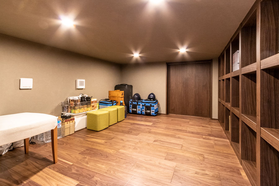 明るく開放的な天井の高いリビング、容積率に入らない大収納空間KURAを備えた展示場になります。