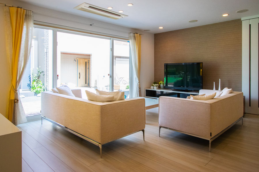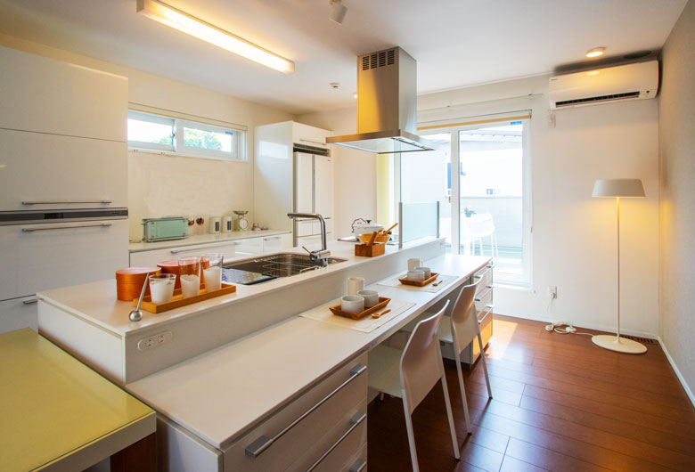シンプルなラインを意識したスタイリッシュな佇まい。デザインと機能性を兼ね備えた住宅設備で美しくまとめられています。究極の快適さと安全性能をお届けする為に、健康、省エネルギー、耐震、耐久、その全てを最高レベルに高めることを追求した住まいです。