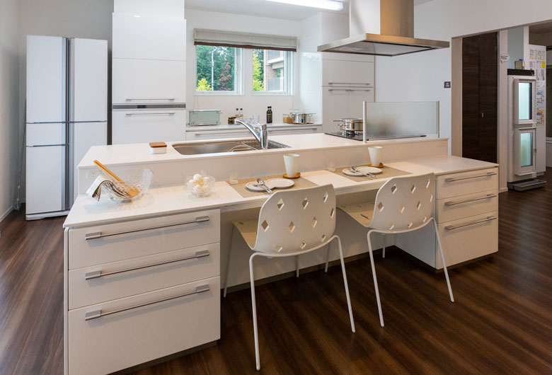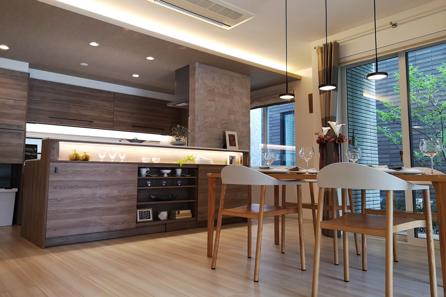 統一感のあるスタイリッシュなデザインと全館床暖房などの充実した標準仕様、そして、省エネ大賞最高賞を受賞した高い性能で、理想の暮らしを叶える「i-smart」。大きな吹き抜けやリビング階段など、開放的な空間構成の住まいをご提案しています。また、キッチンをはじめとする住宅設備は、デザインと機能性を両立した一条オリジナル。最新の「グレイスシリーズ」のキッチン、ドレッサーもご覧いただける展示場です。