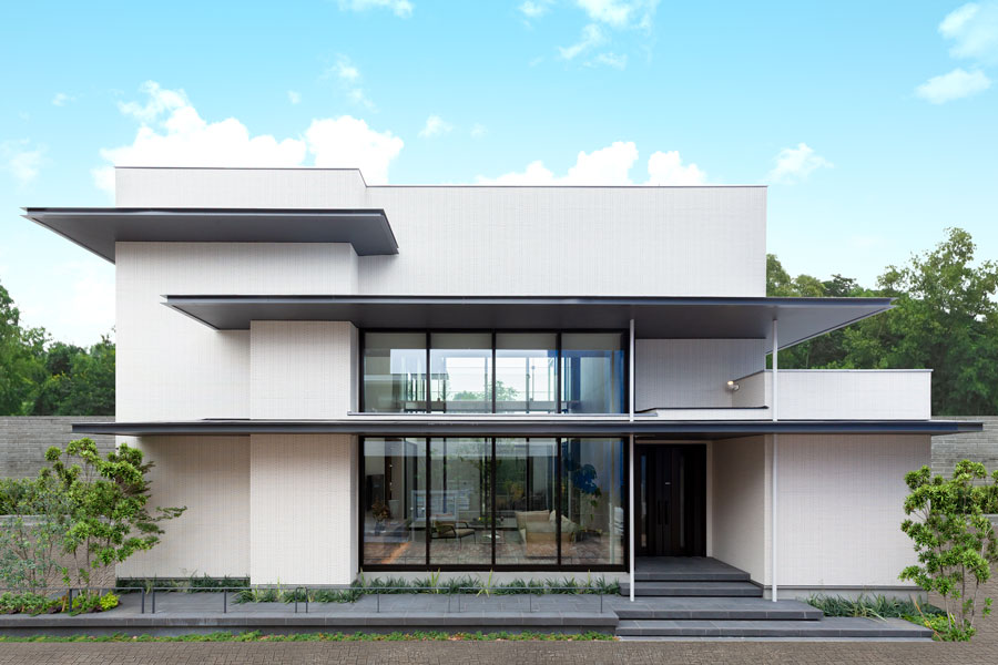 シンプルな立方体と、のびやかな水平フィンの組み合わせにより、モダンで洗練された印象の外観。