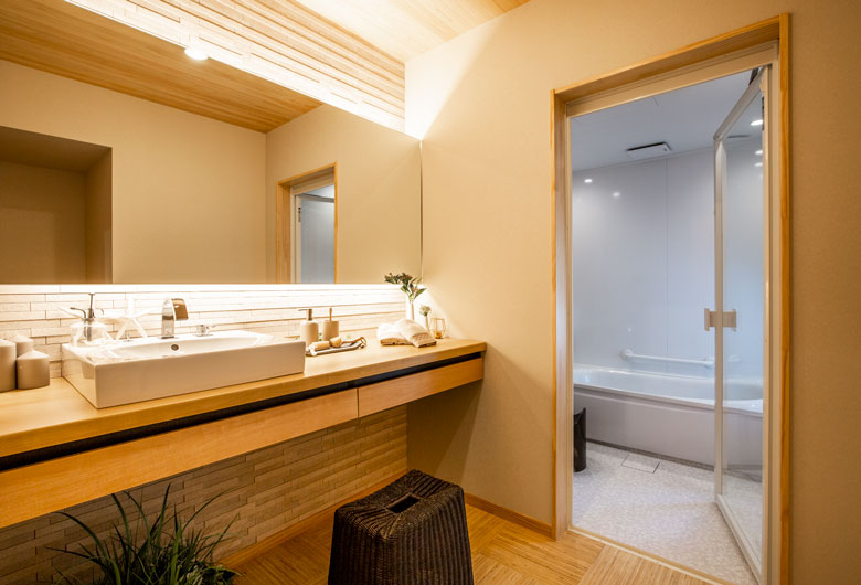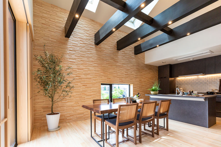 国産檜材を内装材に豊富に使用し、品質も優れた高耐震・高断熱の和モダン住宅です。
