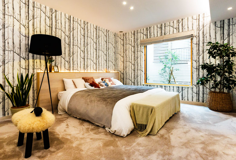 大空間の2階リビングには、家族の気配をいつでも感じられるワーキングスペースがあり、テレワークなどでご利用いただけます。リビングと接した開放的なバルコニー『スカイラナイ』では、ホームパーティーが楽しめます。1階には、ランドリースペース・ファミリークローゼット・ドレッシングルームを一体にした『家事ラク』動線を採用。一年中快適な湿度調整ができる『全館空調』も導入しております。