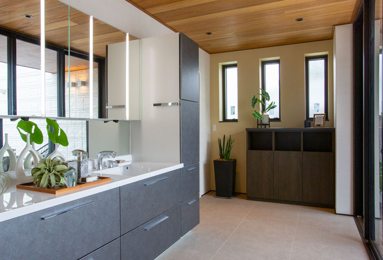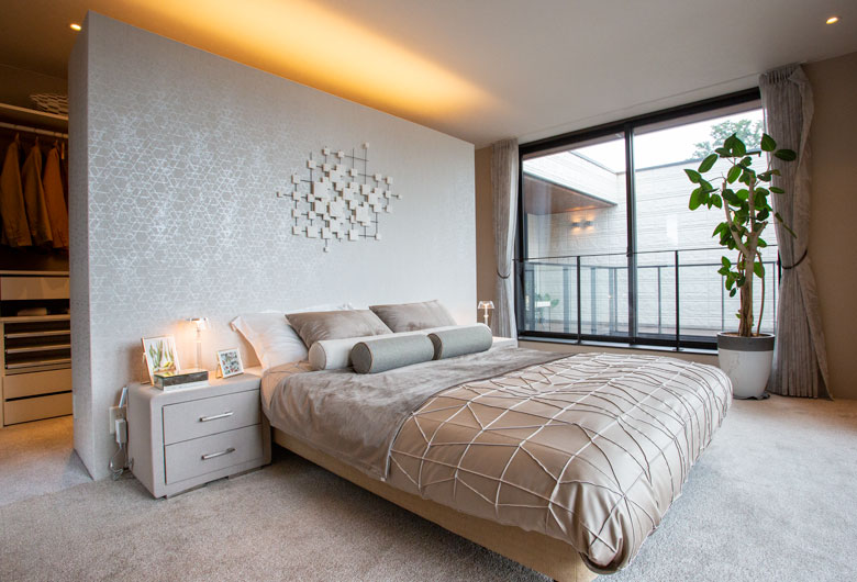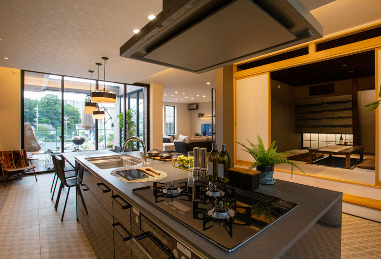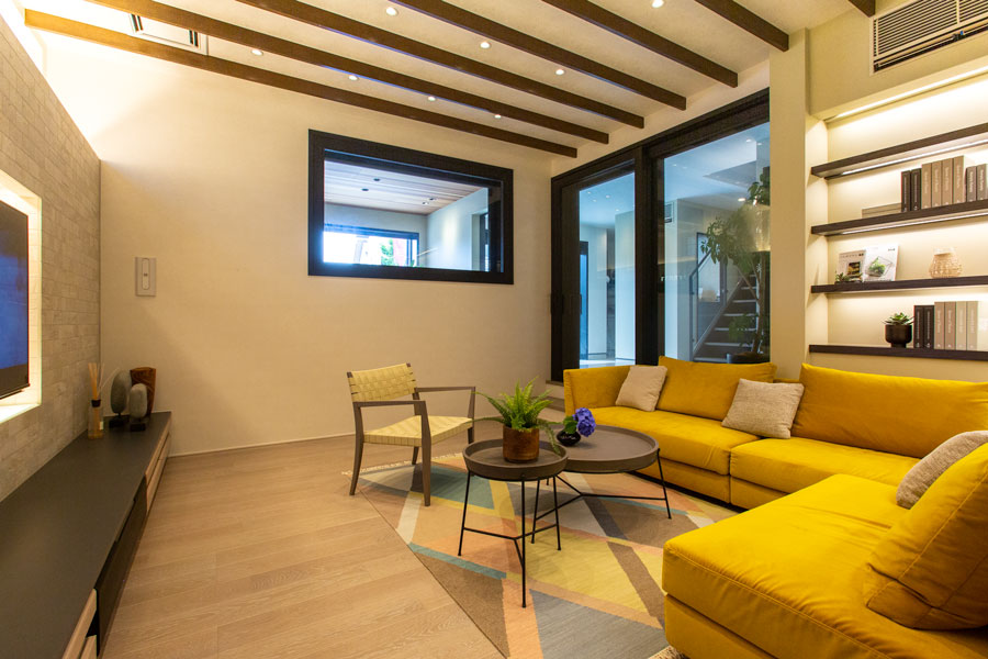 ダイナミックな3層袖壁によってプライバシーを保ち上空から光を取り入れつつ内外が混然一体となる立体的な生活空間をご提案しています。LDKに囲まれたルーフバルコニーはオープンカフェにもなるゆとりのアウトドアスペース、街中でグランピングも楽しめる屋外での暮らしを満喫できる設計になっています。