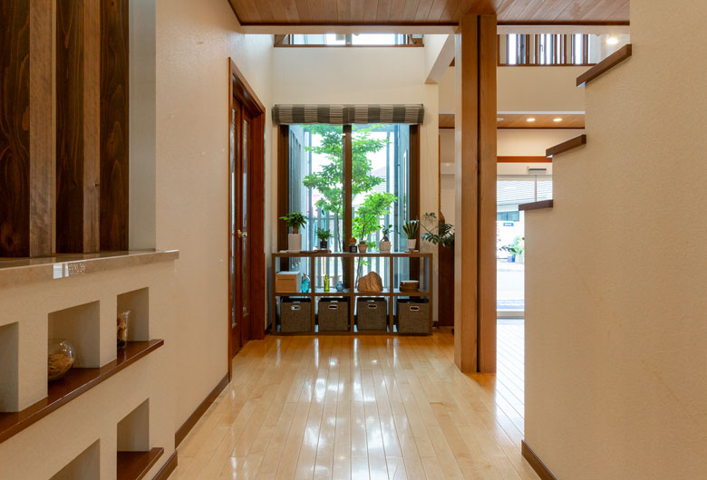 伊勢ヒノキや秋田杉、北海道・岩手産カラマツ、青森ヒバなどの骨太4寸材を構造材に100%使用する日本の木でつくる家をお客様のこだわりに寄り添った完全注文住宅でご提案いたします。
