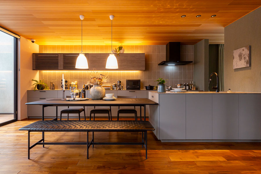 耐震性に優れた強固なビッグフレーム(BF)構法が住まいに大開口・大空間をつくることを可能にしました。豊かな解放感を味わいながらあたたかく過ごせる住まいをご提案します。ぜひご見学ください。