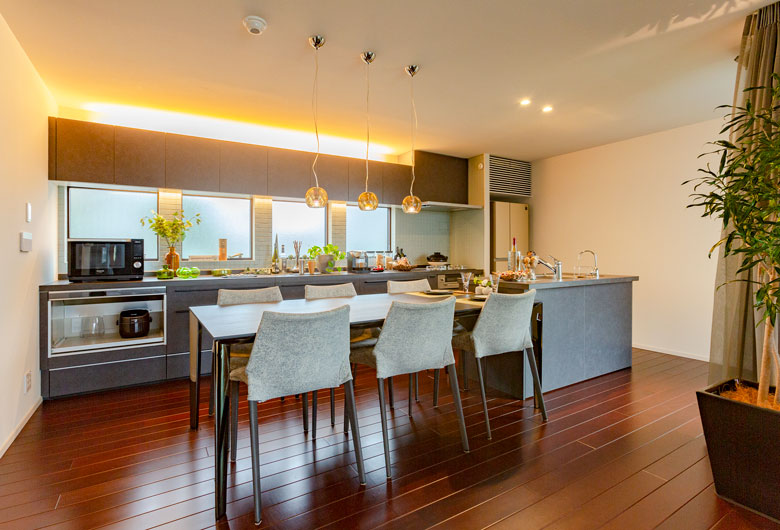 大空間、大開口、世界の銘木による木質感あふれる上質な空間をご体感ください。