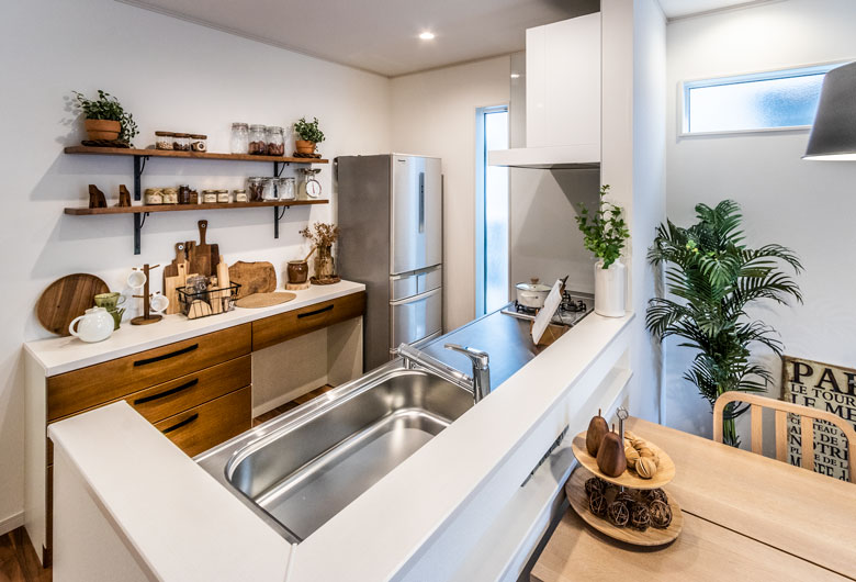 松戸展示場では、テイストの異なる2つの住まいを同時に見学できます。約34坪のナチュラルモダン棟は、等身大の広さで現実的なベースプラン。小屋裏収納やウォークインクローゼットなどの豊富な収納や、キッチン横に洗面室を配置して家事動線を効率化するなど、嬉しい工夫も満載!ライフスタイルや好みに合わせてこだわりたいなら、約41坪のシンプルモダン棟がオススメ。2階リビングに友人を招いてパーティーをしたり、屋上空間でのんびり寛いだりと、ワンランク上の暮らしを目指したプランが魅力です。