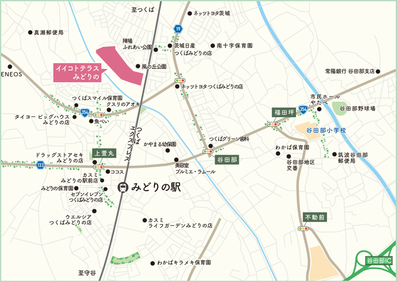 豊かな自然な街並みが広がる「つくば市みどりの」エリアです。