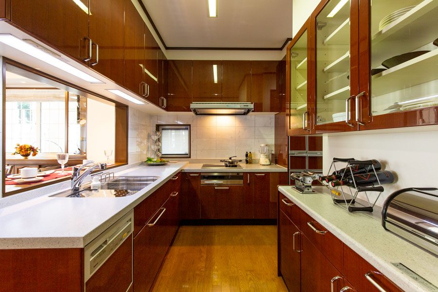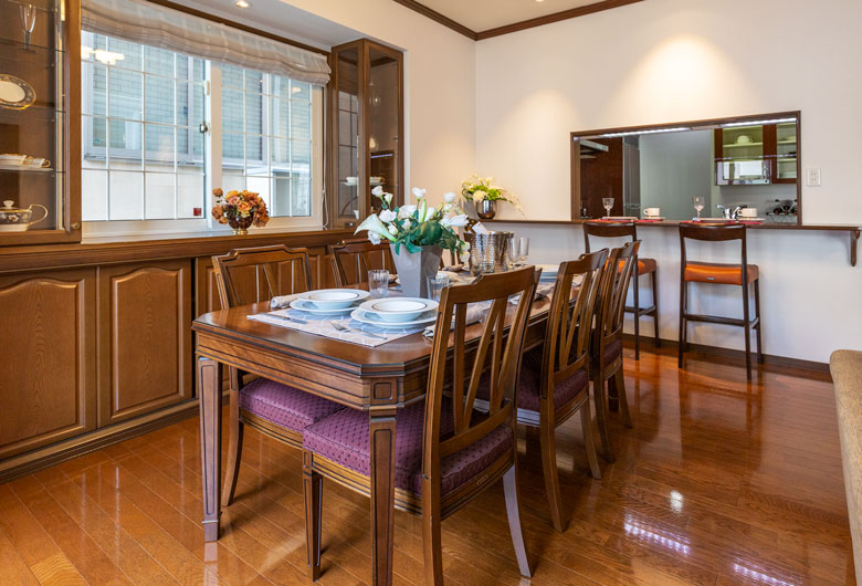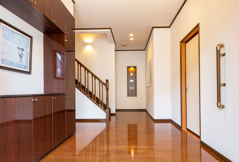 無垢材をふんだんに使った上質な室内空間とレンガタイル貼りが魅力の住まい