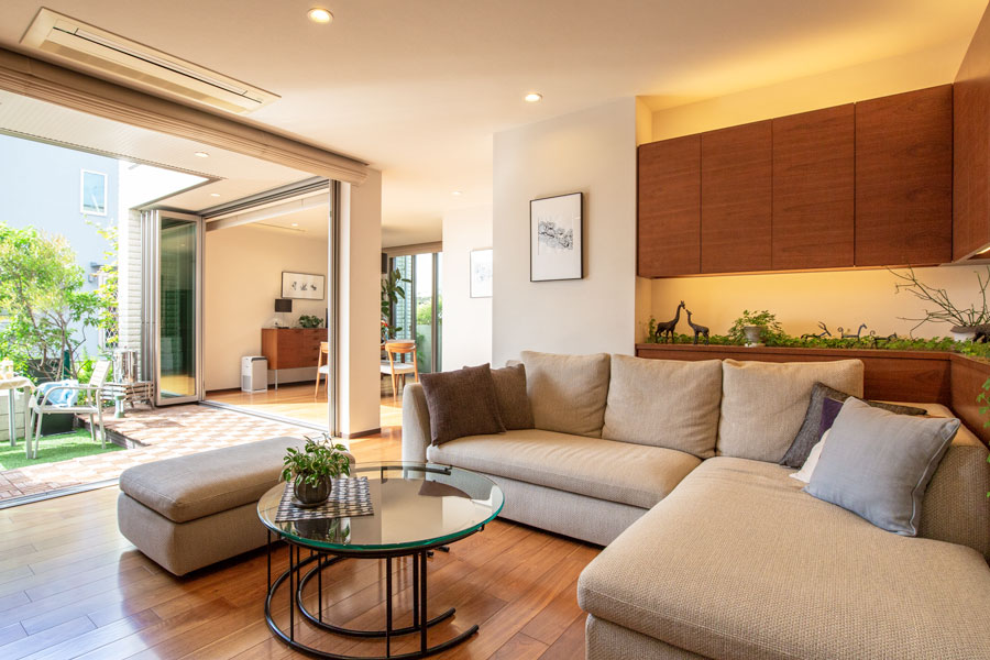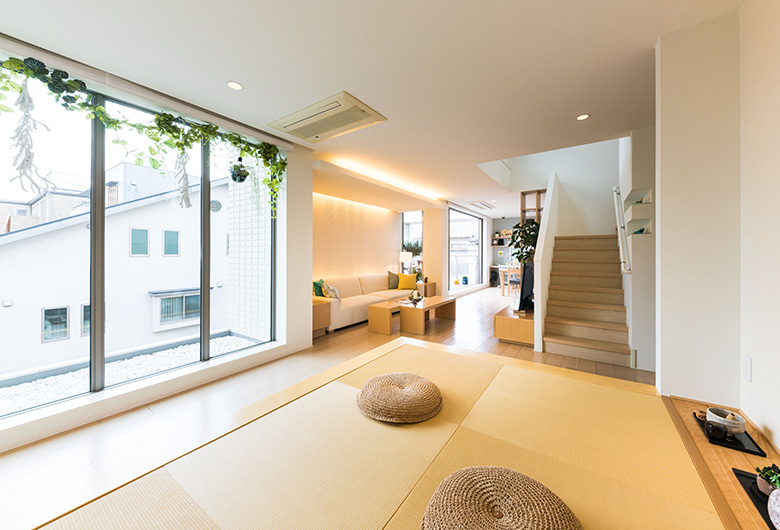 重鉄構造で叶える、開放的な暮らし。視線を遮りつつ、フルオープンでアウトドア空間とつながる人気の間取りをぜひ展示場でご体感ください。住まい心地に大切な家事動線や収納工夫などのポイントもご説明させていただきます。